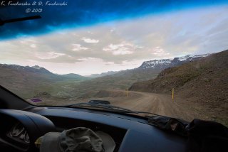 Rankiem dopływamy. Jest zimno, ale dzięki temu widoczność jest znakomita. Już z daleka widać, że szczyty gór Islandii są ciągle pokryte śniegiem. Prom, mijając strome ściany Seydisfjorduru, wpłynął do portu. Wygramoliliśmy się szybko samochodem, by… kolejne 4 godziny spędzić przy odprawie. Celnicy z wyjątkowym uporem wyłuskują z kolejki Polaków i innych „podejrzanych” obcokrajowców. Trafiamy na gruntowną „przepierkę”, z kontrolowaniem samochodu przy pomocy psa włącznie. Niestety nasz nadbagaż (wwieźć można tylko 3kg jedzenia na głowę) jest zdecydowanie zbyt duży. Cała nadwyżka zostaje zarekwirowana i przeznaczona do utylizacji. I tu przydają się dobre kontakty międzyludzkie. Celnicy widząc, że raczej przemytnikami nie jesteśmy, po rozmowie z przełożonymi, pozwalają nam zabrać ze sobą cały zarekwirowany prowiant. Mandat, jako formalność, musimy zapłacić, ale już z lżejszym sercem. Według wszelkich informacji Islandia jest znacznie droższa niż Norwegia, tak więc bez własnego ekwipunku mielibyśmy poważny problem z aprowizacją. Dopiero potem przekonaliśmy się, że ówczesny kryzys tak mocno uderzył w ten kraj, że ceny w niektórych sklepach tylko nieznacznie odbiegały od tych w Polsce.