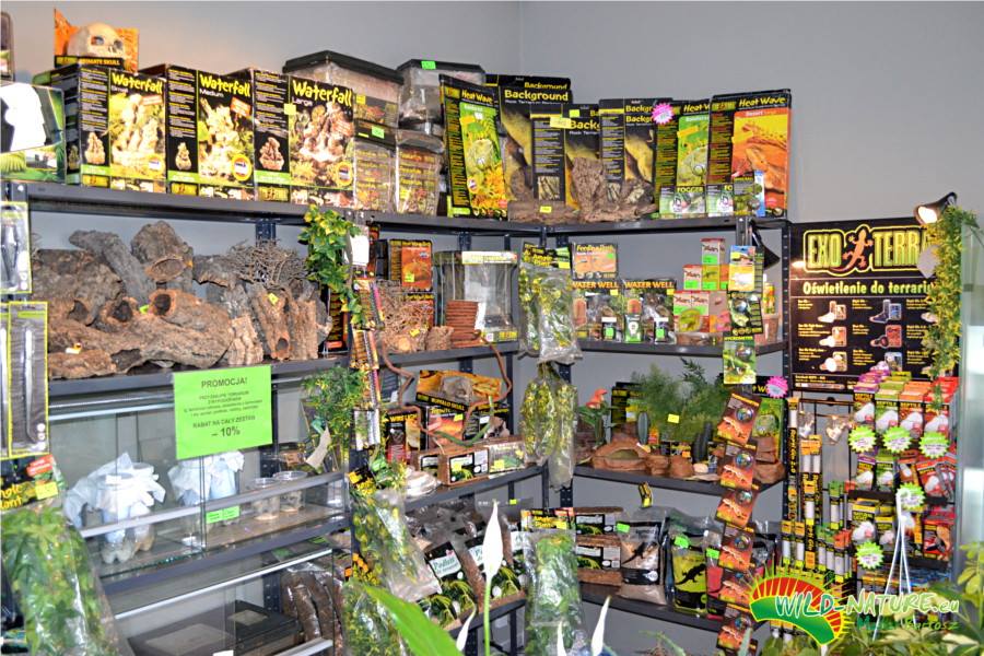 Jeśli szukacie Państwo profesjonalnego sprzętu terrarystycznego, to świetnie, że czytacie Państwo ten tekst, bo znajdziecie go właśnie u nas - szeroki wybór produktów firmy EXO TERRA i Komodoo: świetlówki, żarówki, kamienie i maty grzewcze, kryjówki, skałki, poidełka, tła do terrarium, wodospady. Ponadto ekologiczna trzykrotka, bromelie, epifity, korek. W ofercie również karmówka – świerszcze, drwenojady, mączniki i oczywiście muszki owocówki Drosophila.