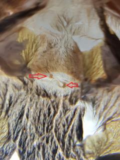 Przybliżenie wykonanego zdjęcia na telefonie. Już tutaj widać szeroką linię oraz zalążki spermatek. Choć przy tej wielkości wylinki zdążają się błędy przy samej identyfikacji.