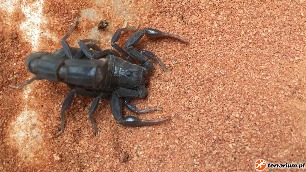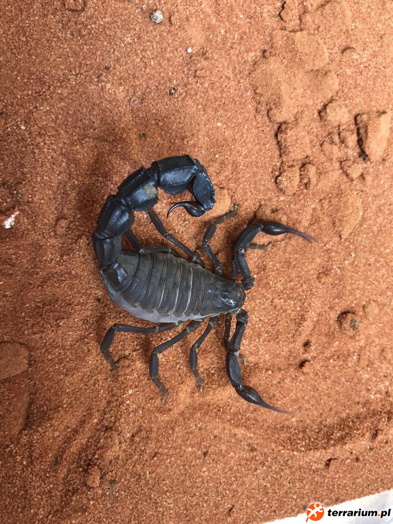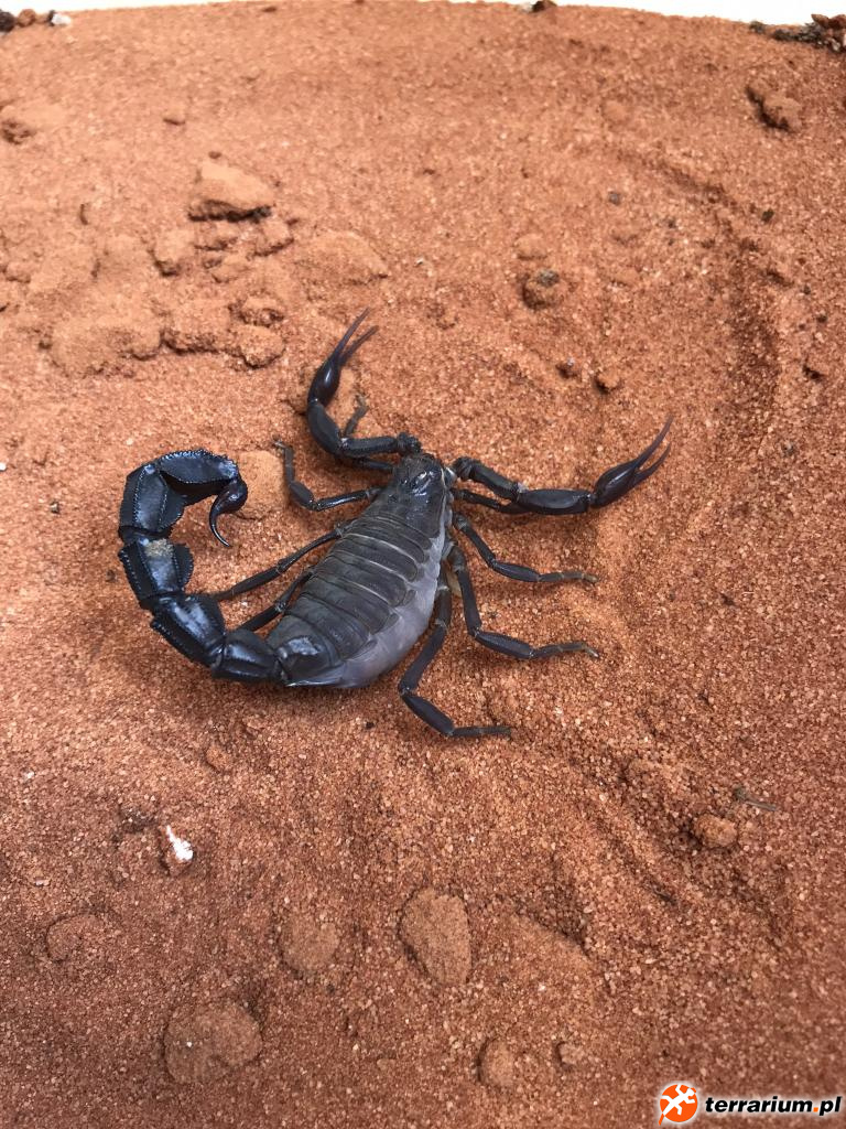 Dorosłe osobniki karmić raz w tygodniu lub raz na dwa tygodnie w zależności od wielkości karmówki i apetytu skorpiona, młode raz pub dwa razy w tygodniu.