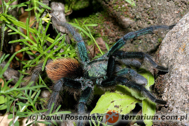 Ptasznik o wyjątkowo atrakcyjnym wyglądzie. Swoim ubarwieniem przypomina ptasznika z gatunku Chromatopelma cyaneopubescens. Jego odnóża są koloru niebieskiego, karapaks jest zielony zaś odwłok ... czytaj więcej zaloguj się lub zarejestruj się