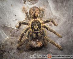 Pterinochilus to rodzaj dużych, naziemnych pająków z rodziny ptaszników (Theraphosidae), endemicznych dla Afryki, głównie jej wschodnich i południowych regionów. Cechują się masywnym, owłosionym ciałem, osiągającym nawet 15-20 cm rozpiętości odnóży. Ich ubarwienie jest zazwyczaj stonowane, w odcieniach brązu, szarości lub pomarańczy, co zapewnia doskonały kamuflaż w suchym, skalistym środowisku sawann i terenów trawiastych, gdzie kopią głębokie nory lub zajmują naturalne szczeliny. Pająki z tego rodzaju są znane ze swojego defensywnego i często agresywnego charakteru. W sytuacji zagrożenia, zamiast uciekać, przyjmują charakterystyczną postawę obronną z uniesionym przednim odcinkiem ciała i odnóżami, odsłaniając groźnie wyglądające kły jadowe (chelicery). Nie posiadają włosków parzących, typowych dla ptaszników Nowego Świata, ale ich jad uznawany jest za stosunkowo silny jak na ptaszniki. Są samotnikami i aktywnie polują w nocy, ich dieta obejmuje głównie owady i inne stawonogi, a czasem małe kręgowce. W ekosystemie pełnią rolę drapieżników szczytowych, regulując liczebność populacji swoich ofiar.