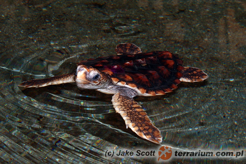 Żółw Karetta to gatunek morskiego gada z rodziny żółwi skórzastych, występujący w ciepłych wodach oceanicznych na całym świecie, w tym w Morzu Śródziemnym i u wybrzeży USA. Osiąga imponujące rozmiary, do 1,2 metra długości karapaksu i masę ciała przekraczającą 100 kg. Charakteryzuje się masywną, sercowatą głową z potężnymi szczękami, przystosowanymi do miażdżenia twardych skorup małży i krabów. Jego karapaks (grzbietowa część skorupy) ma barwę od czerwonobrązowej do oliwkowej. Jest gatunkiem wędrownym, odbywającym dalekie podróże między żerowiskami a plażami lęgowymi. Samice powracają, by złożyć jaja na tych samych plażach, na których się wykluły. Niestety, gatunek jest narażony na wyginięcie z powodu utraty siedlisk lęgowych, zaśmiecenia oceanów i przyłowu w sieciach rybackich....