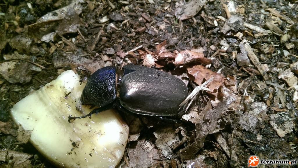 Chalcosoma atlas to jeden z największych chrząszczy na świecie, należący do rodziny poświętnikowatych. Gatunek ten występuje w wilgotnych lasach tropikalnych Azji Południowo-Wschodniej, w tym w Malezji, Indonezji i na Filipinach. Samce osiągają imponujące rozmiary, do 130 mm długości, i charakteryzują się potężnym, wygiętym rogiem na głowie oraz dwoma mniejszymi na przedpleczu, które służą do walk godowych z rywalami. Ubarwienie ciała jest czarne lub ciemnobrązowe z metalicznym, zielonkawym lub miedzianym połyskiem. Aktywny głównie nocą, żywi się sokami wyciekającymi z uszkodzonych drzew oraz przejrzałymi owocami. Larwy, tzw. pędraki, rozwijają się w spróchniałym drewnie, gdzie odżywiają się celulozą, a ich rozwój może trwać nawet kilka lat. Ze względu na spektakularny wygląd i rozmiary jest bardzo pożądany wśród kolekcjonerów....