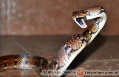 Na ogół spokojny wąż, choć również potrafi być agresywny w chwil zagrożenia lub pod wpływem silnego stresu zwija się w wielokrotne "S" i staje się wcieleniem większego kuzyna C. radiatus ... czytaj więcej zaloguj się lub zarejestruj się |
