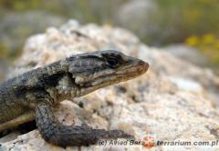 Cordylus polyzonus, znany jako karłowaty girdled lizard, to niewielka jaszczurka z rodziny Cordylidae, endemiczna dla Południowej Afryki, występująca głównie w Prowincji Przylądkowej Zachodniej. Osiąga długość około 10-15 cm, charakteryzując się krępym, spłaszczonym grzbietowo-brzusznie ciałem pokrytym silnie, kolczastymi łuskami ułożonymi w regularne rzędy, tworzącymi rodzaj 'pancerza'. Ubarwienie jest zmienne, zwykle w odcieniach brązu, szarości lub oliwki, często z ciemniejszymi plamami, co zapewnia doskonały kamuflaż. Jego ogon jest krótki, kruchy i pokryty ostrymi kolcami, służący do blokowania się w szczelinach skalnych przed drapieżnikami. Zamieszkuje suche, skaliste tereny, zwane fynbos, oraz kamieniste zbocza, gdzie prowadzi dzienny tryb życia, wygrzewając się na słońcu. Jest owadożerny, żywi się głównie małymi stawonogami. Jest jajożyworodny, co jest rzadką cechą wśród jaszczurek, a samica rodzi zwykle 1-3 młode. Jego zachowanie obronne polega na chwytaniu własnego ogona w ...