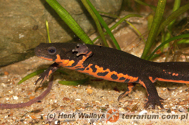 Cynops pyrrhogaster, czyli traszka ognista, to endemiczny płaz ogoniasty zamieszkujący Japonię. Jej grzbiet jest ciemnobrązowy lub czarny, a brzuch jaskrawoczerwony lub pomarańczowy z czarnymi plamami, co stanowi ostrzeżenie dla drapieżników. Żyje w chłodnych, czystych wodach stojących lub wolno płynących: stawach, row...