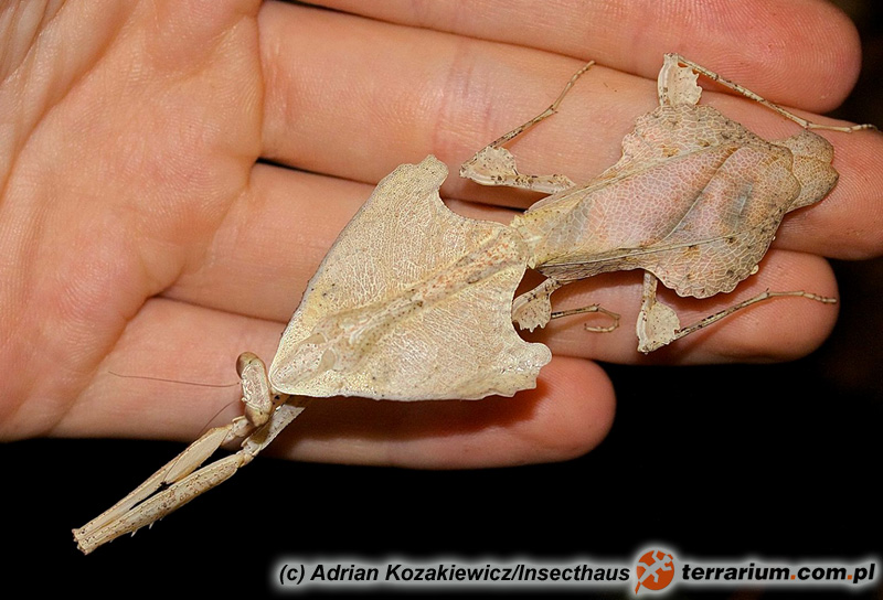Deroplatys trigonodera, znany jako modliszka liść, to niezwykły owad z rodziny modliszkowatych (Deroplatyidae), endemiczny dla Malezji i Sumatry. Jego ciało, osiągające 5-7 cm długości, jest doskonałym przykładem mimetyzmu. Przedplecze ma charakterystyczny, rozszerzony i spłaszczony kształt, który wraz z pokrywami skrzydeł imituje suchy, zniszczony liść, często z pozornymi przebarwieniami i „dziurami”. Nogi również są spłaszczone i listkowate. Zamieszkuje wilgotne lasy deszczowe, gdzie bytuje wśród opadłych liści i niskiej roślinności. Jest drapieżnikiem z zasadzkowym stylem polowania; nieruchomo czeka, aż ofiara (głównie inne owady) znajdzie się w zasięgu jego przednich, chwytnych odnóży. Aktywny jest głównie w ciągu dnia. Jego kamuflaż służy zarówno do ataku, jak i obrony przed drapieżnikami. Samice składają ooteki, z których wylęgają się liczne nimfy....