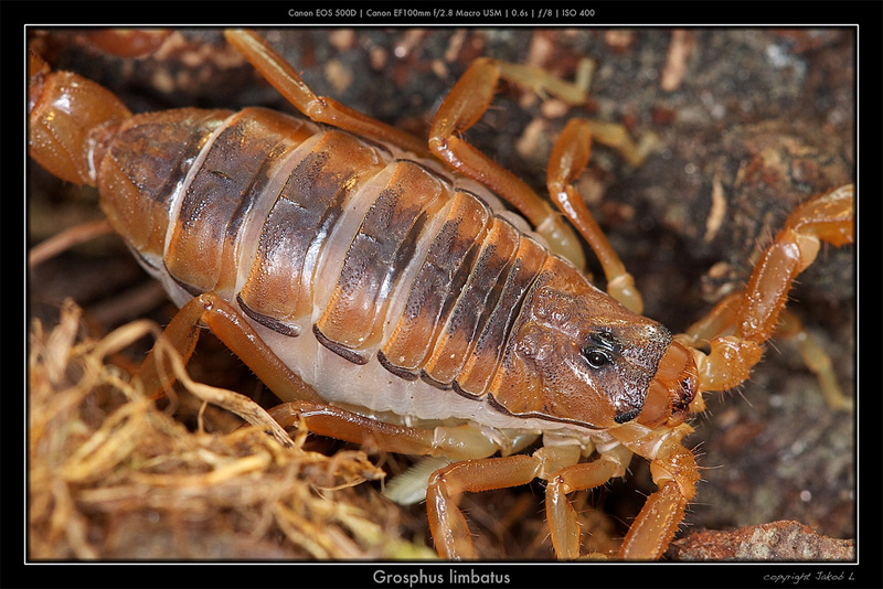 Grosphus limbatus to gatunek skorpiona z rodziny Buthidae, endemiczny dla Madagaskaru. Ciało osiąga długość 5-7 cm i charakteryzuje się jednolitym, ciemnobrązowym lub czarnym ubarwieniem z wyraźnie zaznaczonymi, ciemniejszymi segmentami. Szczególnie masywne są pedipalpy (szczękoczułki) i metasoma (odwłok z kolcem jadowym). Gatunek ten zamieszkuje suche, półpustynne i sawannowe regiony zachodniego Madagaskaru, gdzie prowadzi nocny tryb życia, kryjąc się za dnia pod kamieniami, w szczelinach skalnych lub w opuszczonych norach. Jest drapieżnikiem polującym na owady i inne stawonogi. Jad Grosphus limbatus zawiera silne neurotoksyny, co czyni go gatunkiem o znacznym potencjale medycznym i niebezpiecznym dla człowieka. Wykazuje typowe dla skorpionów zachowania, w tym taniec godowy i żyworodność....