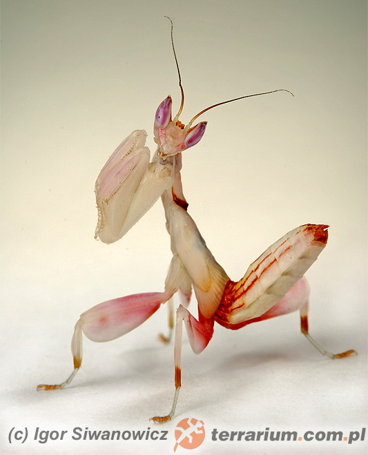 Duża dysproporcja w rozmiarach ciała obu płci, rzadko spotykana wśród modliszek. Charakterystyczny wygląd oraz piękne biało-różowe ubarwienie (począwszy od stadium L2) czynią H. coronatus ... czytaj więcej zaloguj się lub zarejestruj się