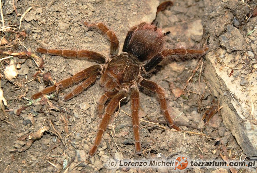 Dorosłe samice są potężnie zbudowane a ich podstawowym ubarwieniem jest brąz, poza ostatnią parą "femur" u odnóży które są barwy czarnej. Posiadają wzór na karapaksie prowadzący od oczu ... czytaj więcej zaloguj się lub zarejestruj się
