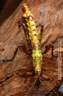 Parectatosoma mocquerysi to niezwykły owad z rzędu straszyków, endemiczny dla Madagaskaru. Charakteryzuje się wyjątkowym, silnie spłaszczonym i rozszerzonym ciałem, które doskonale imituje zeschnięty, pokręcony liść, co stanowi znakomity przykład mimetyzmu. Jego ubarwienie jest zwykle brązowawe lub zielonkawe, z licznymi wypustkami i nierównościami na powierzchni ciała, które potęgują efekt kamuflażu. Gatunek ten jest ściśle nadrzewny, zamieszkuje lasy deszczowe, gdzie prowadzi nocny tryb życia, pozostając w ciągu dnia nieruchomo wśród gałęzi i liści. Żywi się głównie liśćmi roślin występujących w swoim biotopie. Samice są znacznie większe i masywniejsze od samców i rozmnażają się głównie partenogenetycznie, co jest powszechne wśród straszyków. Jego wyjątkowy wygląd czyni go jednym z najbardziej poszukiwanych gatunków przez entuzjastów terrarystyki....