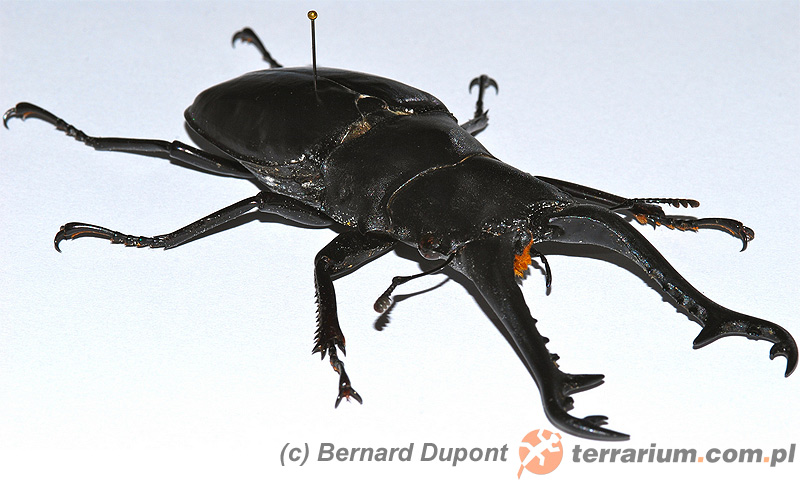 Prosopocoilus giraffa to niezwykły chrząszcz z rodziny jelonkowatych, występujący endemicznie w Azji Południowo-Wschodniej, głównie w lasach deszczowych Indochin i Archipelagu Malajskiego. Samce osiągają imponujące rozmiary, do 12 cm długości, i charakteryzują się ogromnymi, rozgałęzionymi żuwaczkami przypominającymi poroże jelenia, które mogą być dłuższe od reszty ich ciała. Używają ich do walk godowych z rywalami o dostęp do samic oraz do przytrzymywania partnerki podczas kopulacji. Ubarwienie ciała jest zwykle ciemnobrązowe lub czarne z charakterystycznym połyskiem. Owady te prowadzą głównie nocny tryb życia, a w ciągu dnia kryją się w dziuplach drzew lub pod korą. Ich rozwój jest związany ze spróchniałym, wilgotnym drewnem, w którym żerują i przepoczwarczają się larwy. Dorosłe osobniki żywią się wyciekającym sokiem drzew. Dymorfizm płciowy jest bardzo wyraźny – samice są znacznie mniejsze i pozbawione okazałych żuwaczek....