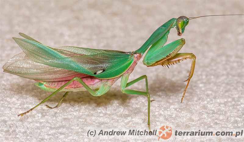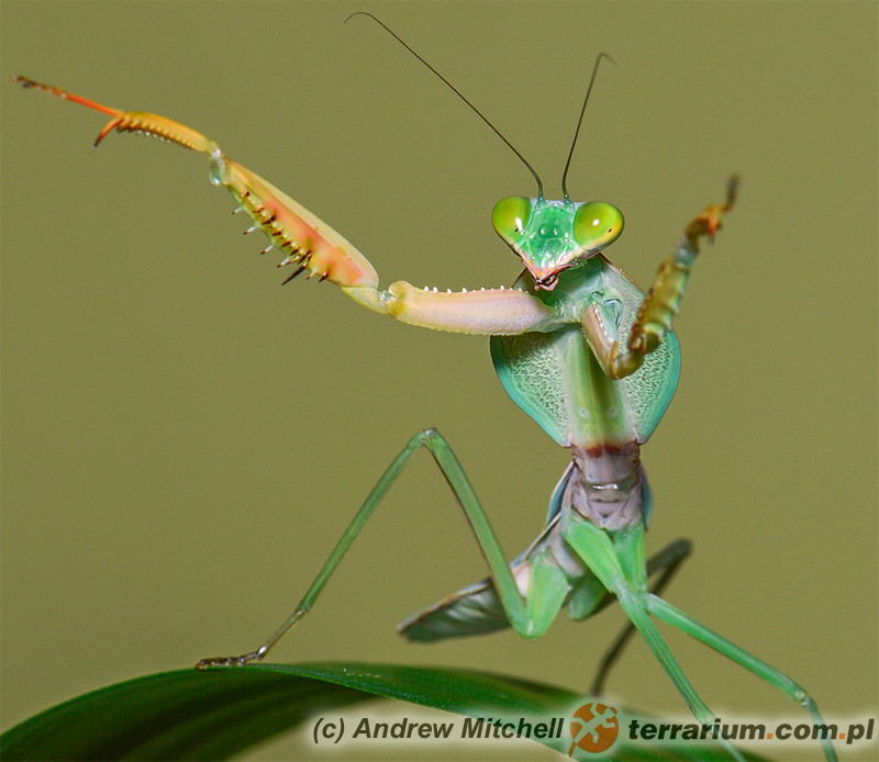 Rhombodera basalis to gatunek modliszki z rodziny Mantidae, występujący endemicznie w Azji Południowo-Wschodniej, głównie w Malezji, Indonezji i Tajlandii. Cechuje się charakterystycznym, rozszerzonym i spłaszczonym przedpleczem w kształcie rombu, które służy jako skuteczna kamuflaż oraz broń do odstraszania drapieżników. Ubarwienie ciała jest zazwyczaj zielone, co pozwala jej idealnie wtapiać się w liściaste środowisko lasów deszczowych i ogrodów, gdzie poluje z zasadzki. Jest drapieżnikiem polującym aktywnie na inne owady, takie jak muchy, motyle i mniejsze prostoskrzydłe. Samice są większe od samców i wykazują wyraźny dymorfizm płciowy. Gatunek ten jest popularny w hodowli terrarystycznej ze względu na swój spektakularny wygląd i stosunkowo łagodne usposobienie w porównaniu do innych modliszek....