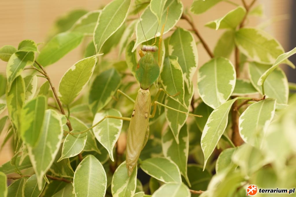 Duża, agresywna modliszka, o intensywnym zielonym kolorze. Samica osiąga do 11cm.