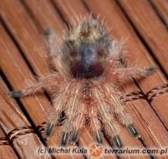Dorosłe samce i samice całkowicie nie różnią się od siebie ubarwieniem. Samiec dorasta do około 4-5 cm DC, ma dłuższe odnóża i szczuplejszą budowę ciała. Dorosłe samce posiadają haczyk... czytaj więcej zaloguj się lub zarejestruj się