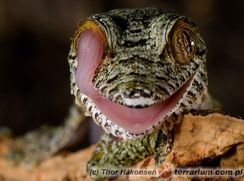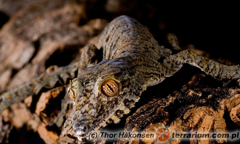 Uroplatus fimbriatus to niezwykły gekon endemiczny dla Madagaskaru, osiągający do 33 cm długości. Jego najbardziej charakterystyczną cechą jest doskonały kamuflaż – ciało pokryte jest nierówną, porowatą skórą o barwie i fakturze imitującej korę drzew, a brzeg głowy, tułowia i ogona otacza frędzlowata skóra rozmywająca kontury sylwetki. Gatunek ten prowadzi wyłącznie nocny tryb życia, dzień spędzając nieruchomo przyczepiony do pni drzew w deszczowych lasach nizinnych. Aktywny po zmroku, poluje na owady i inne bezkręgowce. Posiada pionowe źrenice i palce wyposażone w przylgi, które w połączeniu z pazurkami umożliwiają mu sprawne poruszanie się po gładkich powierzchniach. Jest jajorodny....
