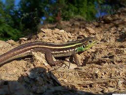 Młoda jaszczurka trójpręga (Lacerta trilineata).