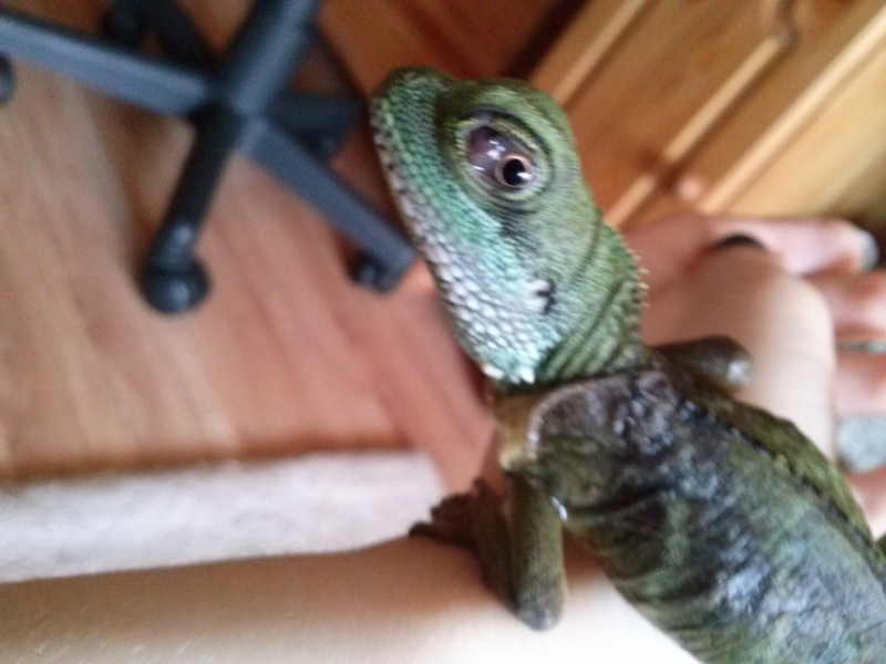 Witam, od kilku dni posiadam małą agamkę błotną. Ma 34 cm, ładnie przechodzi wylinke. W budowie terra pomagała kuzynka, która hoduje gady. Mała ma w terra odpowiednie żarówki, temparaturę oz wilgotność. Oprócz basenu, spryskuję jej terrarium kilka razy dziennie dość obficie.