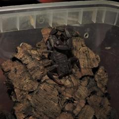 Cześć posiadam skorpiona Grosphus grandidieri i dzisiaj wieczorem zauważyłem że jest pokryty z jednej strony jest pokryty dziwną substancją jakby śluzem. Nie wiem czym to może być spowodowane nigdy takiego czegoś nie widziałem.  Proszę o szybką odpowież