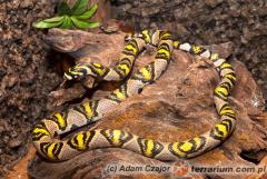 Euprepiophis mandarinus to jeden z najbardziej efektownych azjatyckich węży. O smukłej budowie, z niewielką głową, słabo odznaczającą się od reszty ciała. To gatunek wykazujący znaczną zmienność pod względem osiąganych rozmiarów jak i kolorystyki ubarwienia. Od jasnoszarego po czerwono-szary, z rysunkiem wzoru w części grzbietowej zazwyczaj składającym się z wyraźnych, czarno ubarwionych rombów, z żółtymi jego krawędziami oraz żółtym środkiem; na głowie naprzemienne, żółte i czarne pręgi, w tym tworzące rysunek szewronu. Strona brzuszna jasno zabarwiona.