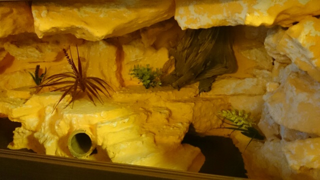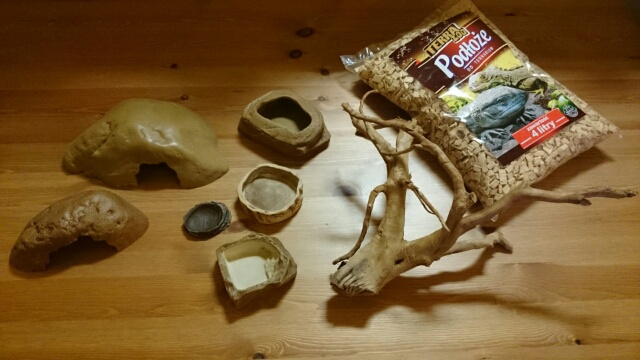 Witam. Na sprzedaż mam urządzone terrarium dla jaszczurek. Wymiary 120x40x40. Oświetlenie dzienne na dwie żarówki halogenowe plus nocne ledowe niebieskie. Do terrarium dodaje podłoże, korzeń, miskę na pokarm, na witaminy/wapń. Ponadto do wyboru jedna z dwóch kryjówek i jedna z dwóch misek na wodę widocznych na zdjęciach.
