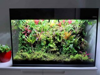 Lekka modyfikacja w kompozycji Solejrolia wycięta w strefie środkowej , by mech mógł w pełni się tam rozrastać. Sadzonka Neoregelia Purple powędrowała w dolną część zbiornika. , teraz tylko czekać aż osiągnie rozmiary rośliny matecznej