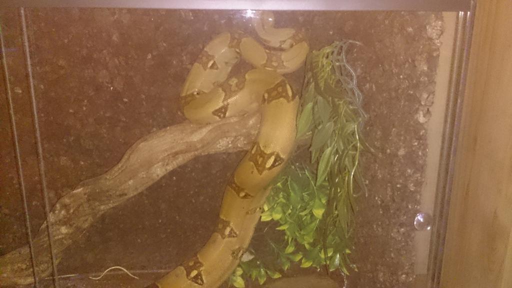 Witam. Mam do sprzedania samicę Boa dusiciela odmiana barwna pastel. Mierzy ona około 150cm jest zdrowa i przyjmuje pokarm bez problemów. Nie posiada żadnych blizn. Dodatkowo dorzucam w pełni wyposażone (termoregulator, kabel grzewczy, czujniki światła) terrarium o wymiarach 80/60/40. Cena jaka mnie interesuje to 300zł za wszystko. Oczywiście posiadam wszelkie dokumenty zwierzęcia.