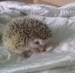 Jeżyk bardzo przyjazny lubi być brany na ręce, tak jak szybko zwinie się w kulkę tak też od razu się rozwija.