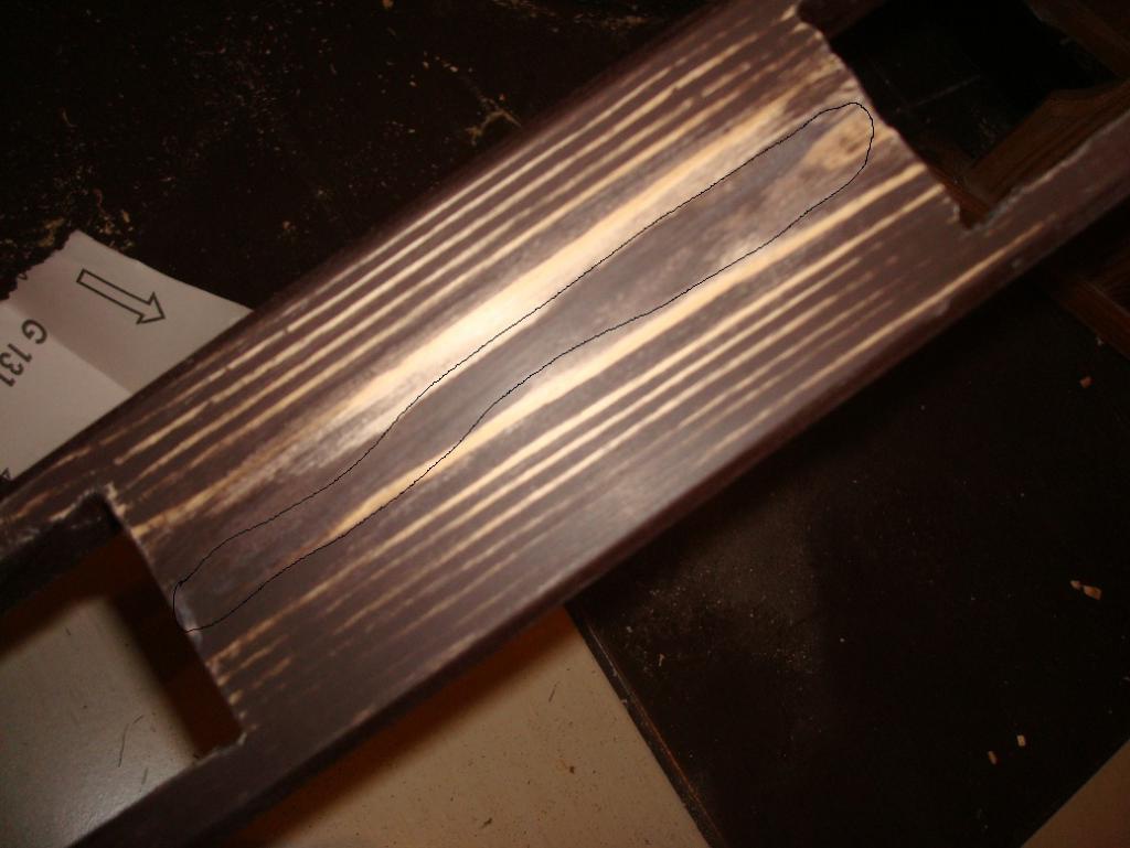Na zdjeciu słabo widac poniewaz juz byla klejona szlifowana kilka razy by nie bylo widac uskoku.