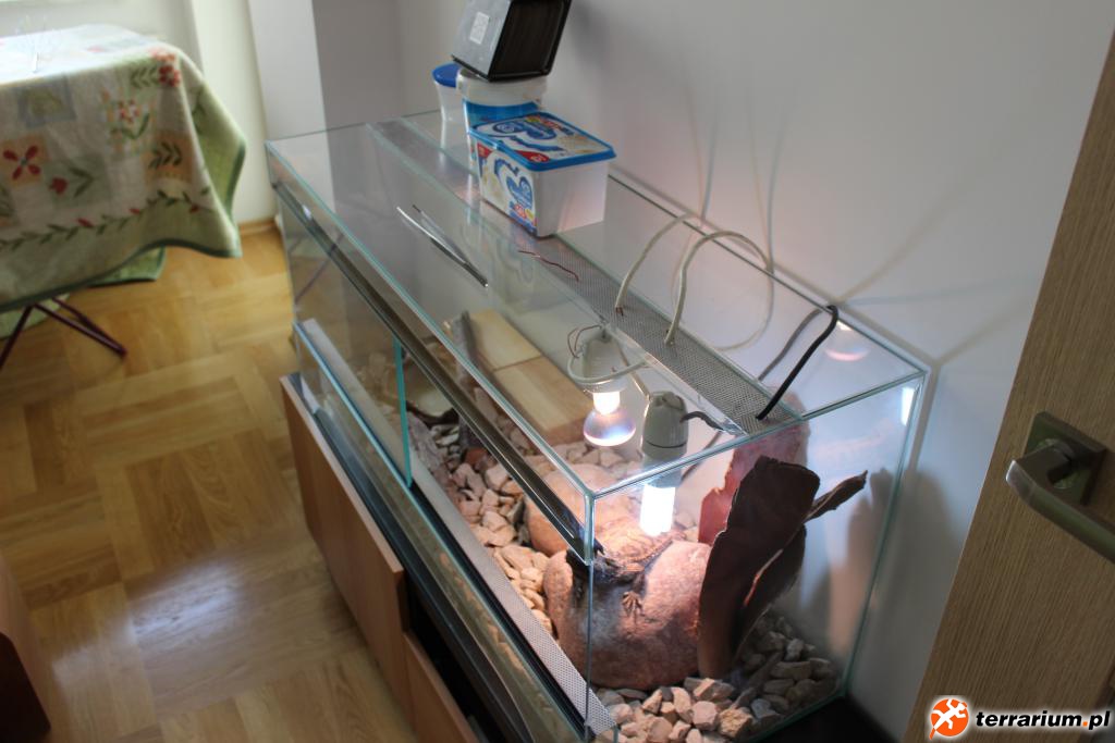 Oddam w dobre ręcę agamę brodatą - samiec wiek 4 lata. Agamę oddam z terarrium (to co widać na zdjęciach). Zależy mi aby oddać jaszczurkę razem z terrarium. Zwierzak jest w bardzo dobrej kondycji. Jest zdrowy i odrobaczony. Dodaję do niego książeczkę zdrowia. Odrobaczany był w klinice OAZA u Pani doktor Maluty. Mogę jak ktoś będzie chciał karmówkę - drewnojady i karaczany madagaskarskie