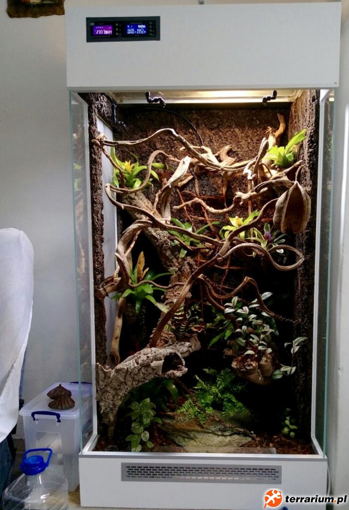 @Stefanfd autorowi tego postu niestety nie udało się uniknąc paru drobnych błędów w odniesieniu do mojego projektu niestety poprzez częściowe wykonanie przez osoby trzecie. Z tego też powodu mój pierwowzór wykonałem osobiscie . niemniej jednak punkty szczególnie narażone na willgoć takie jak dolna część terrarium zabezpieczone są dodatkową szczelnie sklejoną kuwetą z plexi 2mm czego nie widać na fotkach u @vipserek największym problemem okazały się frezy pod szyby boczne orginalnie moje mają głebokość 7 mm i szerokość na styk do szkła co pozwoliło uniknąć stosowania dodatkowych profili w rowkach . myślę ze dalsze prace będą już kopią mojego terrarium w terrarium aktualnie jest mnóstwo roślin i bio podłoże żyjące własnym życiem którego nie wymieniam od początku powstania terrarium