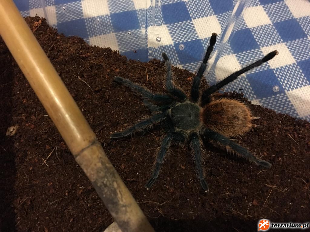 (...) Sam przedwczoraj kupiłem swojego pierwszego ptasznika — Psalmopoeus Irminia (pozdrawiam SpidersPassion) i mam nadzieję, że będzie rosła tak samo szybko jak twoja Chromka. Zastanawiałem się miedzy nią, a właśnie Chromką i po twoich zdjęciach już sam nie wiem czy dobrze wybrałem. (...)